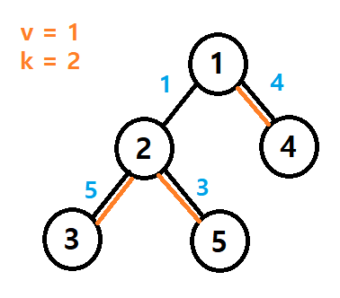 위와 같은 경우에, 2 - 3, 2 - 5 사이의 r 값은 k보다 크기 때문에 union이 되지만, 1 - 2 사이의 r이 1이기 때문에 v와는 연결되지 않는다. 따라서 전부 union을 하더라도 v = 1일 때 관련 영상은 4 하나만 뜨게 되는 것이다.